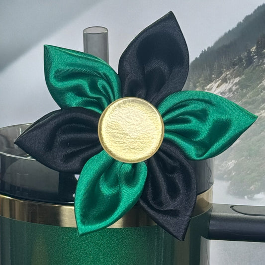 Floral Fancy Flower Topper: Wicked Cup Elphaba Themed Black Green and Gold Satin