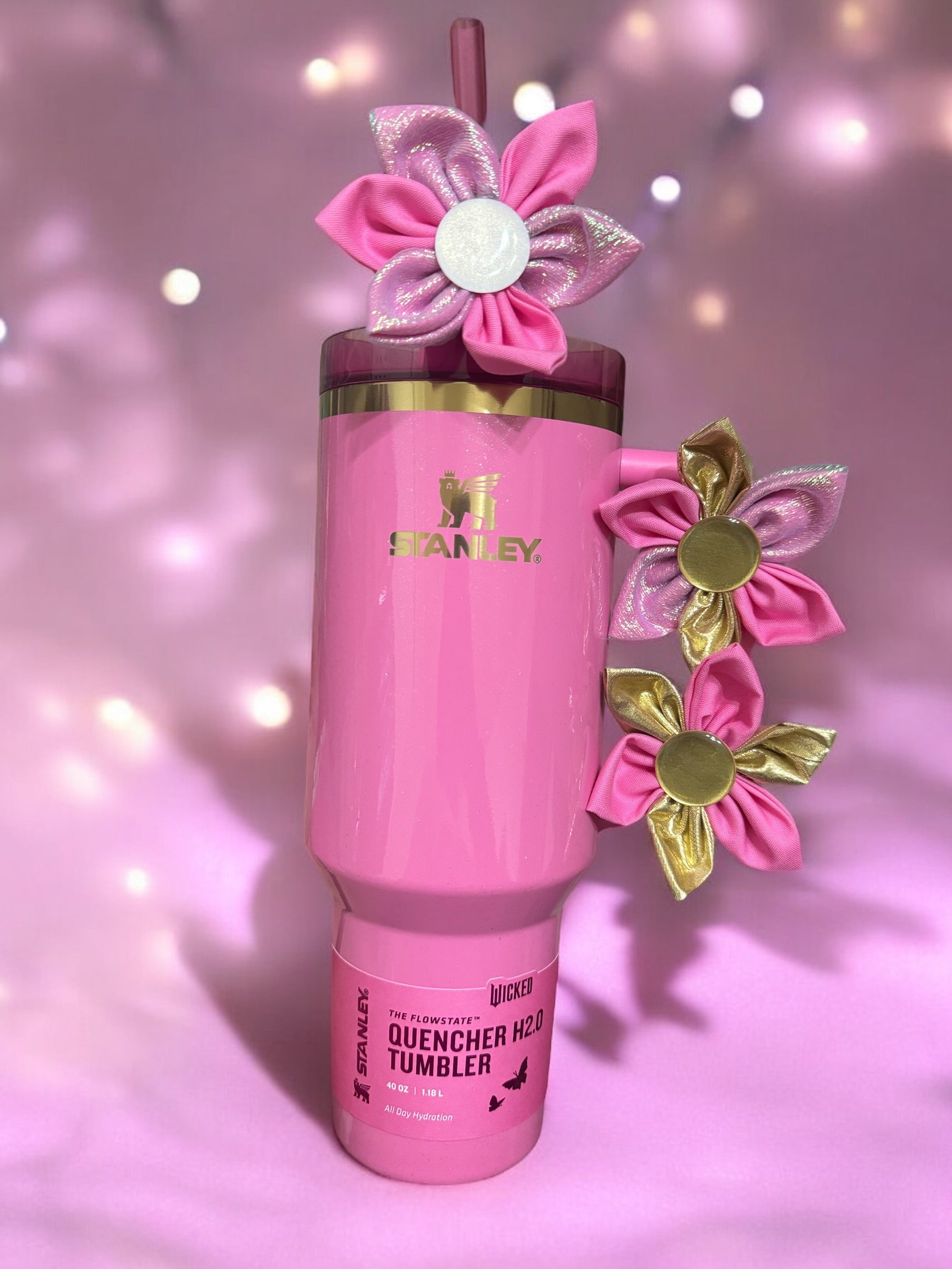 Wicked Glenda Stanley Bow Flower for Tumbler Flower Bow Accessory for Stanley Straw Fabric Flower Wicked Cup Glenda Pink Themed